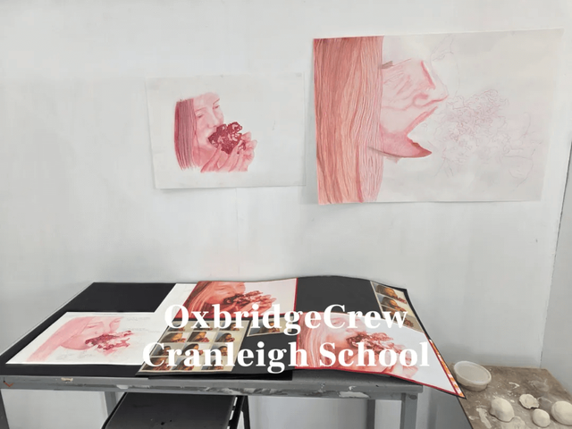 随后牛牛前往了学校的艺术教室,这里摆放了很多学生们自己创作的绘画作品,以人像绘画为主。