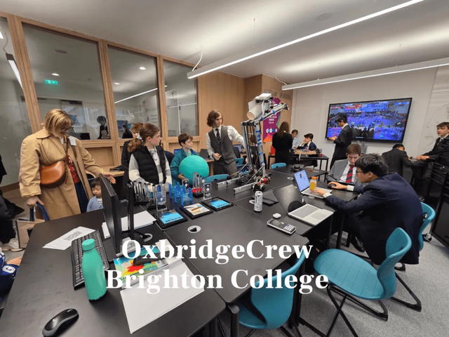 在大楼内,有专门为Sixth Form学生打造的学习室。在其中的一间教室里,高年级的学生们正在向家长和低年级的学生展示自己手工设计的机器,屏幕上也正播放着机器人的比赛。