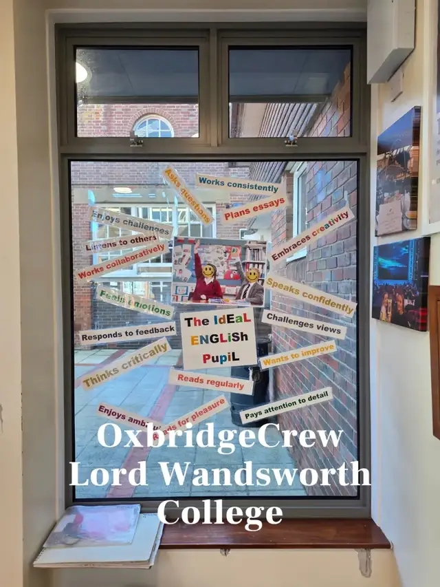 在教室的一个窗户上,贴着关于学校是如何定义一名优秀的英语使用者的词条,包括了自信地表达、养成良好的阅读习惯、享受挑战、批判性的去思考等等特质。