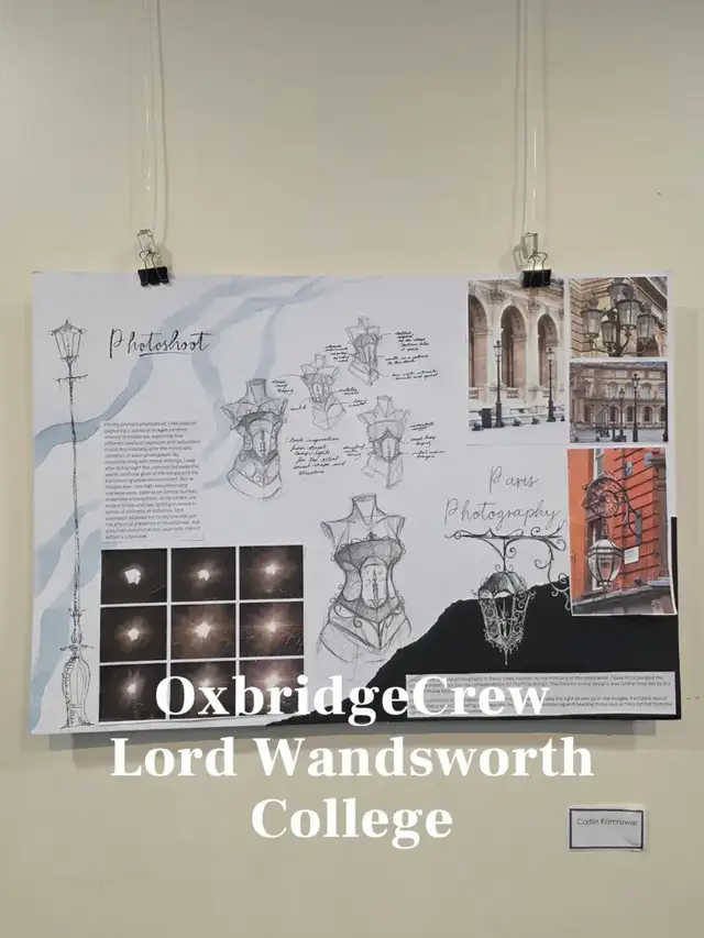 在艺术教室里,陈列了很多学生们自己优秀的作品,包括了山水画和服装设计的底稿以及设计思路,能看出Lord Wandsworth College(万斯沃斯勋爵学院)的学生们在艺术和设计上颇有造诣。