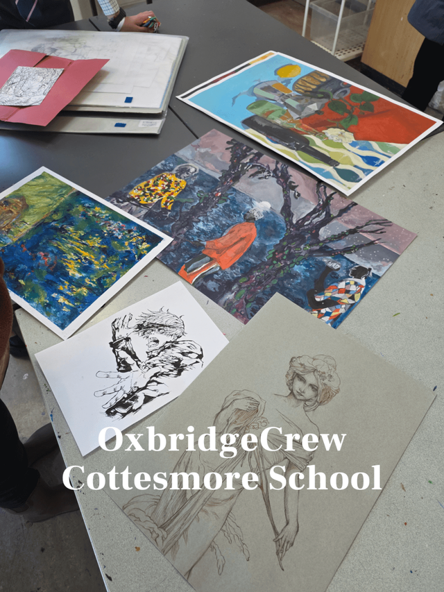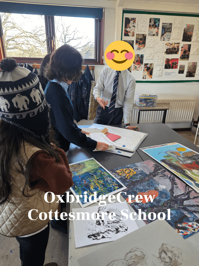 艺术教室里,学生们正在认真的进行绘画创作。还有一位男生和我们详细地介绍了他的创作灵感,还展示了他自己的作品集。