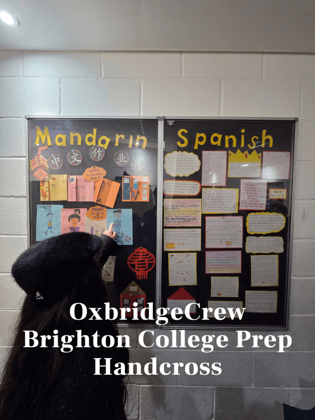 教室外的过道墙壁上,贴着学生们的中文和西班牙语作业。Brighton College Prep Handcross(布莱顿公学预备小学汉克洛斯)要求学生们从8岁开始必修中文课程。