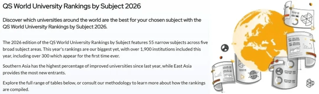 此次2026QS世界大学学科排名涵盖了来自100多个国家和地区的1900多所大学,从中分析了55个学术分支和5大广泛的学术板块的情况,包括: