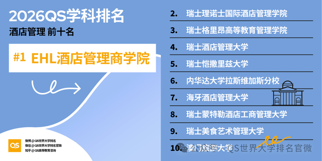 瑞士在4个学科拿到世界第一,苏黎世联邦理工学院在地球与海洋科学、地质学、地球物理学三大领域全球领先;EHL酒店管理商学院在酒店与休闲管理学科上夺得第一。