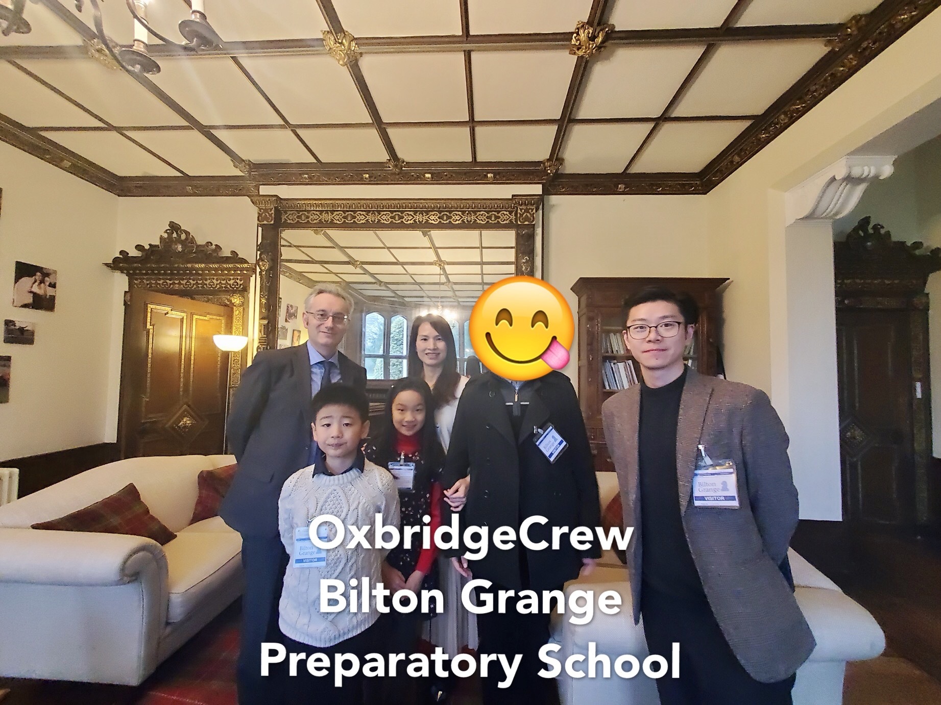 访校结束之际,Zoey、Henry、Zoey与Henry的爸爸妈妈,还有牛剑儿的Chester老师与Bilton Grange Preparatory School(比尔顿农庄预备小学)老师合影留念。