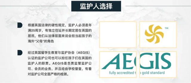 关于监护公司,牛牛推荐可以找AEGIS这类认证过的监护公司,因为他们每年都会对旗下的寄宿家庭进行定期检查确保安全,也会回访孩子的住宿体验。