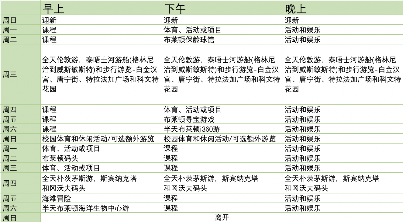 以上费用包含:所有的校内校外活动、校内住宿、课程费用、短途旅行费用、一周3次洗衣服务、结业报告、夏校课程结业证书、伙食费、24小时监管服务。